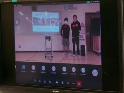 体育館のエアコン工事を行っているため、オンラインで児童朝会を行いました。