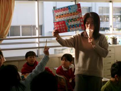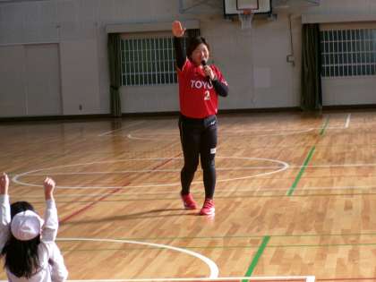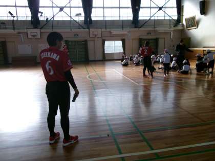 トヨタ自動車のソフトボール部の選手の方が来て、2年生に「投げ方」を教えてくれました。楽しくリレーをしたりしながら、「腕を高く上げるんだよ」「足を大きく振り上げるんだよ」などと、投げ方のコツを教えてくれました。