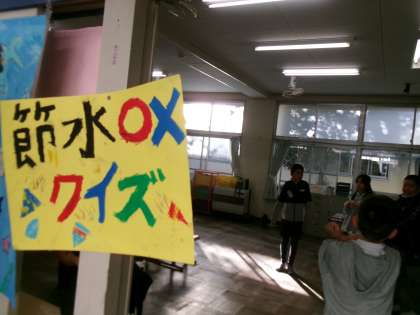 魚釣りやすごろく、鬼ごっこなどゲームを交えて楽しくエコについて伝えていました。