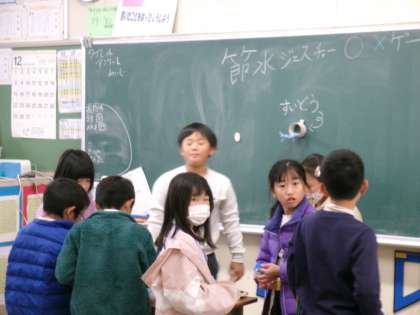 わかったことを、1〜3年生に伝えています。