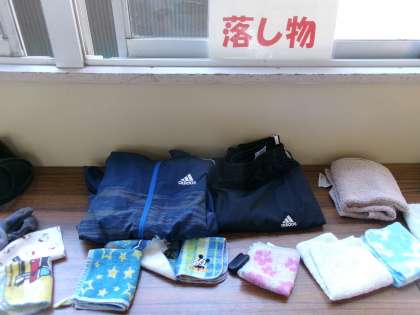 これまでの児童や保護者の方々の忘れ物を、中棟1階廊下に展示しておきますので、ご覧ください。お心当たりのものがありましたら、職員に声をかけてからお持ちください。