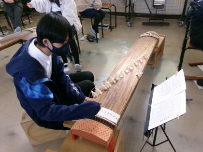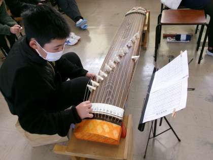 4年生〜6年生は、音楽の時間に「箏」の練習をしています。