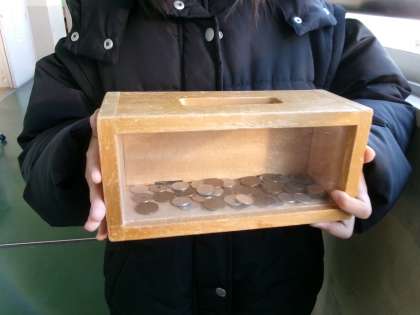 お正月にもらったお年玉の中から、被災した人たちのために募金しました。、