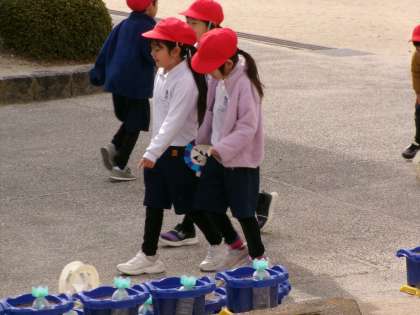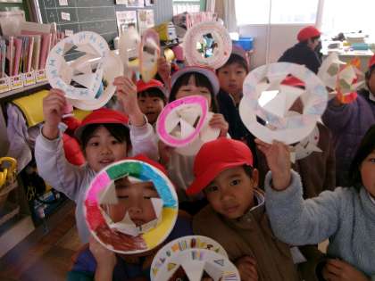 1月31日 1年生は、図工で「紙皿コロコロ」を作りました。
