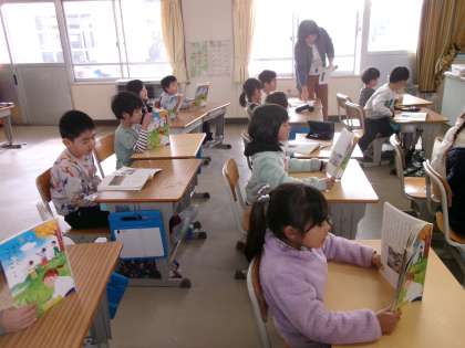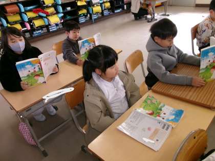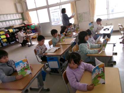 1年生は、国語で音読の練習をしています。