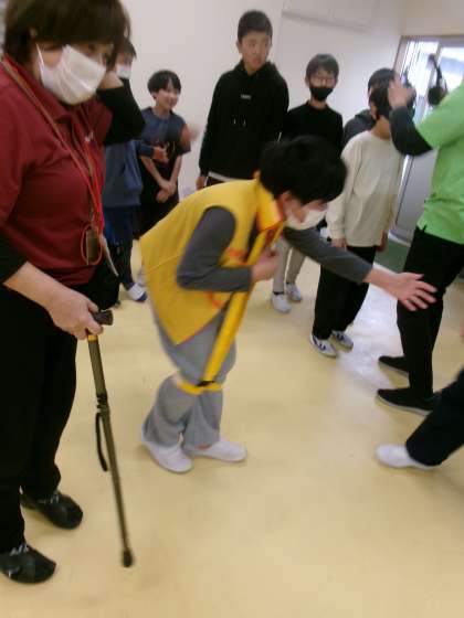 子ども達は動きにくさを感じ、高齢者のことを思いやって行動しようという思いを持ちました。