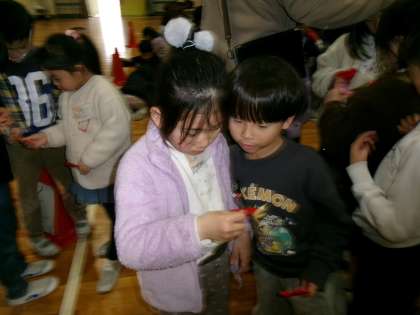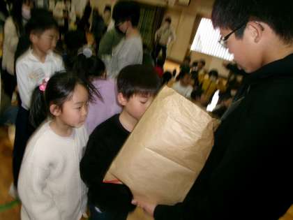 最後に、6年生から下級生に折り紙メッセージのプレゼントを渡しました。みんな、喜んでいました。