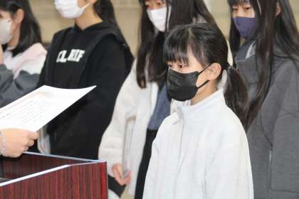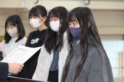 書初めや読書感想画、人権に関する標語などの表彰と、校長からお話をしました。