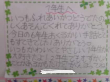 それを見た6年生が、「ありがとうのメッセージ」を送りました。