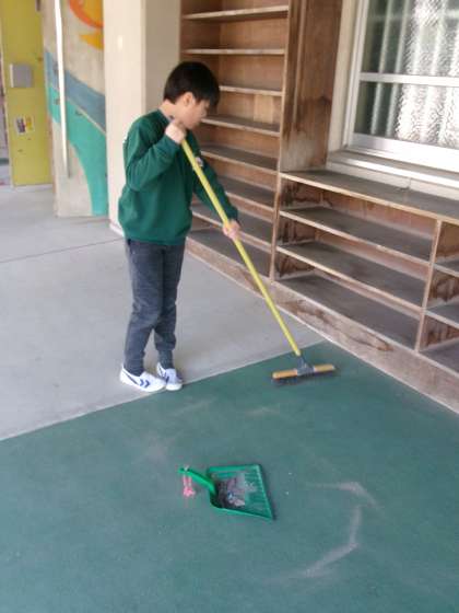 体育館の中や教室、トイレなど、お世話になった6年生のために、一生懸命に準備や掃除をしていました。 リーダーへの第一歩を踏み出しています。
