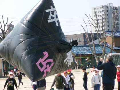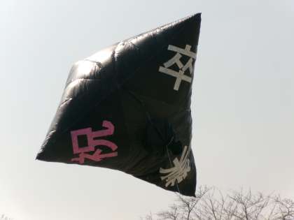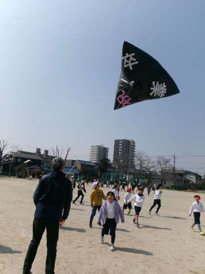 卒業式の日に、空へ上げる予定でしたが、当日は強風のためあげることができませんでした。 今日、打ち上げました。卒業生に見て欲しいので、根川Todayにアップしました。