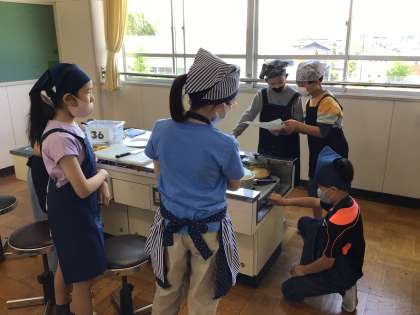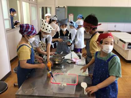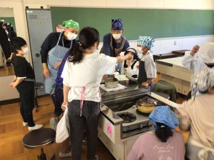 5月13日、もうすぐキャンプに行く5年生が、練習のために、家庭科の学習でカレーを作りました。初めての調理実習ですが、こどもたちはテキパキ。あっという間に材料をきざみ、お米の用意をして、上手に作り上げました。「もう煮えたんじゃない?」「あと5分くらいじゃないの?」とみんなで相談し合いながら作っていました。作りながら、片付けをしている班もありました。本番でも美味しいカレーが作れるといいですね。