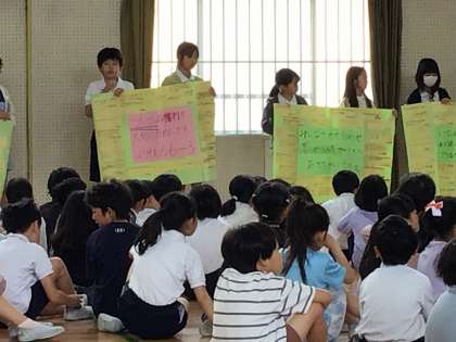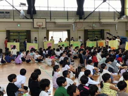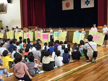 5月14日、児童集会で、なかよし宣言を行いました。これは、人権の問題をクラスで考え、各クラスのなかよし宣言を作って発表するというものです。1年生から6年生までの各クラスの代表の子がクラス全員で決めたなかよし宣言を大きな声で発表しました。「いじめをしない」「なかよくあそぶ」「個性を大切に」「思いやり」など、すてきな言葉がたくさん出てきました。今年一年、なかよし宣言を守って、みんななかよしの根川小学校を作っていきましょう。