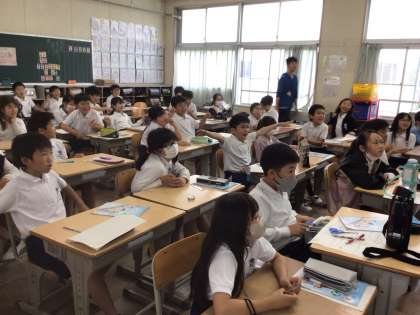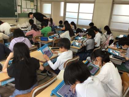 5月15日の5時間目の様子です。4年生2クラスは正反対。1つのクラスは外国語活動で、身に着ける物を大声で曲にのって練習中。とても楽しそうでした。もう1方のクラスは社会科の授業でタブレットで検索し、今日見学したパッカー車について調べていました。みんな真剣でした。3年生はひまわりの種まきです。担任からやり方を聞いていましたが、みんな先生に集中。その後の種まきもすぐ終わりました。