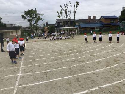 5月27日、体力テストを行いました。50m走やソフトボール投げなど、みんな真剣に行っていました。「去年より、0、5秒早くなったよ。」「めちゃくちゃ飛ぶようになった。」と自分の成長を喜んでいる姿もみられました。昨日、子どもたちが帰った後、教員みんなで線を引きましたが、子どもたちがそれを消すことなく、上手に動き、行うことができました。授業ボランティアの方々が、測定のお手伝いをしてくださり、予定より早く終えることができました。ありがとうございました。