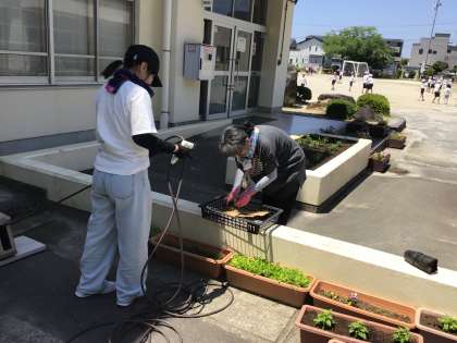 環境ボランティアさんと、図書ボランティアさんが来てくださいました。いつも花壇に新しいお花を植えてくださったり、図書館の窓に飾る季節の飾りを作ってくださったりしています。いつもありがとうございます。