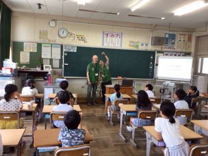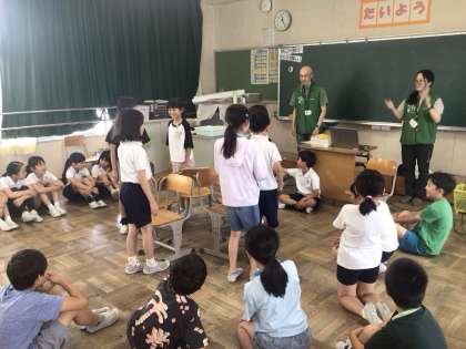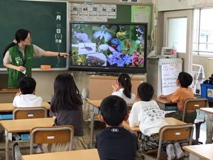 豊田市自然観察の森の方が来てくださり、3年生が矢並湿地について学習をしました。矢並湿地は鞍ケ池の奥にある湿地で、ラムサール条約に登録をされている貴重な湿地です。根川小学校では、小学校のあたりとどう違うのか、どんな草花や生き物がいるのかなど比べ、自然保護について学習しています。今回は、実際に湿地に行って観察会をする予定でしたが、熱中症予防のため、学校で出前授業になりました。実物を見ることができないのは残念でしたが、湿地の写真をみたり、湿地のすごさを知ったりし、よい勉強になりました。
