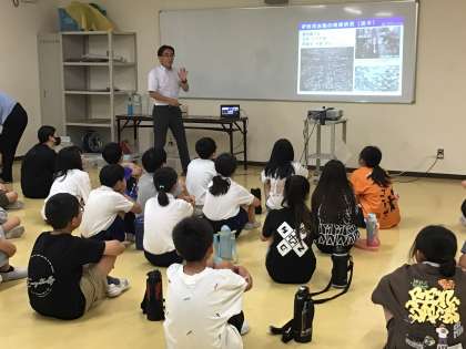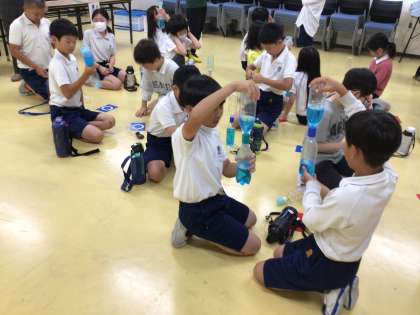5年生が、中部地域づくり協会の方をお招きし、浸水擬似防災講座を行いました。