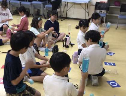 その後、模型を使った堤防が崩れる実験や、竜巻が起こる仕組みの実験を行いました。