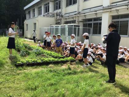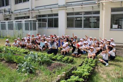今、3年生がひまわりを育てています。これは、豊田市のプロジェクトの一環で、おいでん祭りの時に、豊田市のいろいろな施設を飾るのだそうです。今日は、ひまわりネットワークの方が取材にみえました。3年生が育てているプランターのひまわりを見て、しっかり育っていますねと言われました。3年生の子たちが一生懸命水やりをしてきた証拠です。