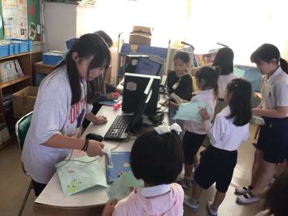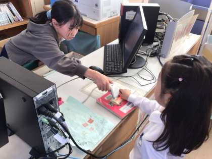 図書委員会の子の企画・運営で、先週から図書室スタンプラリーを行っています。これは図書室で本を借りると、スタンプが押してもらえ、スタンプがたまると手作りのしおりがもらえるというものです。今日も放課にたくさんの子が図書室へ来ていました。「やったー、しおりゲット!」「私はあと1個」本を片手に話していました。読書の秋です。どんどん本に親しんでほしいです。