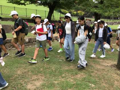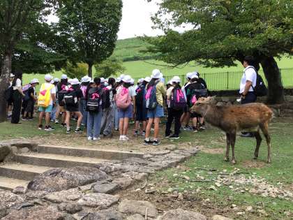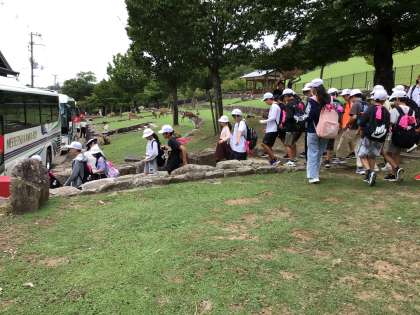 退館式を若草山で、行いました。鹿たちにも見送ってもらい、奈良を出発です。