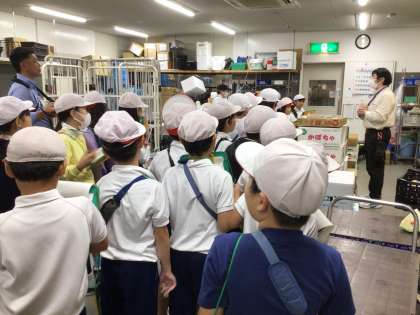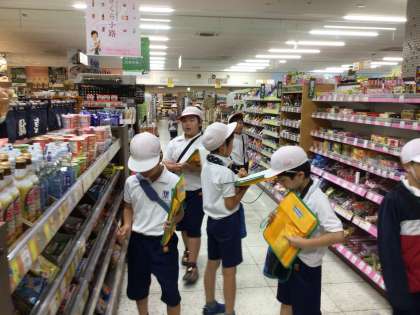 3年生が、近くにあるスーパーマーケットのフィールへ見学に行きました。お店の方のご好意で、開店前のお店に入れていただき、店中をゆっくり見学しました。「上に看板があるよ。」「おかずの作り方が書いてあるよ。」と売れるヒミツをたくさん見つけました。バックヤードでのお仕事の姿や、大きな冷凍庫なども見せていただき、「フィールってすごいね!」と大喜びで帰ってきました。
