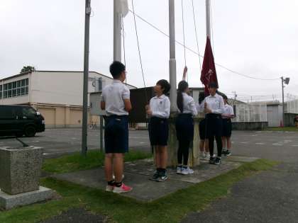 結局雨は降らず、閉会式まで無事に行うことができました。閉会式では優勝した青組に優勝トロフィーが贈られました。旗の掲揚、司会、器具の運搬、ゴールテープ、実況放送など、様々な場面で6年生が活躍しました。よい運動会となりました。