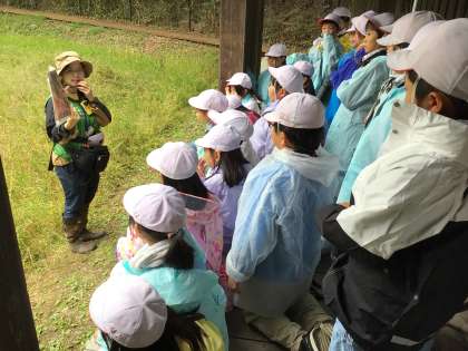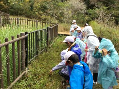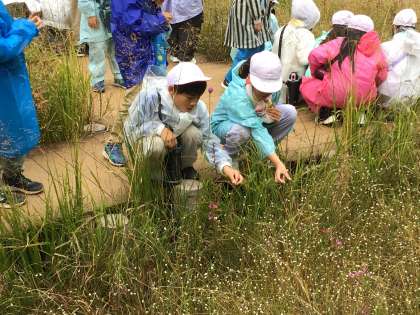 3年生が矢並湿地へ出かけました。夏に行けなかったので、今年度初めての湿地です。午後のクラスはあいにくの雨でしたが、一面に咲き誇るシラタマホシクサを見て、「きれい!」と驚いていました。ヒメタイコウチを探したり、シラタマホシクサが回ることを教えてもらったりして、「すごいものがいるんだね!」と興奮していました。ラムサール条約に登録されたこの湿地が豊田市にあることを誇りに思ってほしいと思います。