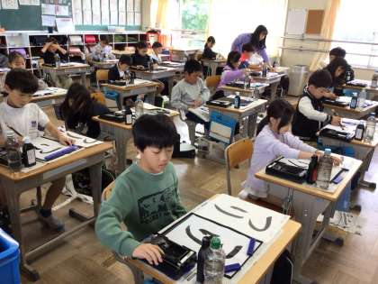 急に寒くなってきているので、体調を崩す子が増えています。今日はすごく強い風が一日中吹いていましたが、子どもたちはそんな中でも元気です。休み時間には、外へ走り出て、サッカーやドッジボール、ブランコに鬼ごっこ。みんな真剣です。授業中にはすごい風に目もくれず、真剣に習字を書いたり、自分の考えを書いたり。集中していました。さすが子どもは風の子です。