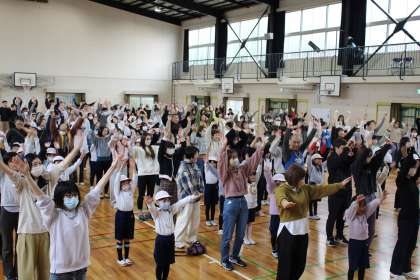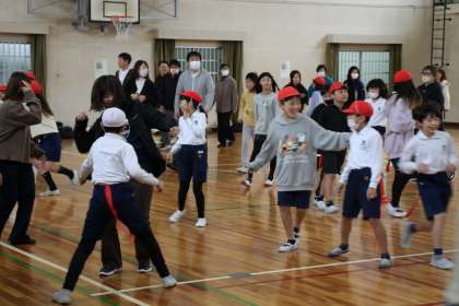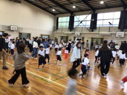 今日はPTA主催の親子学級を行いました。今年は「歩きながらのしっぽ取り」を行いました。初めにみんなで根川っ子体操を行い、その後、保護者と子どもたちの対戦をしました。自分のお家の方のしっぽをねらいに行く子、何人かで作戦をたてて取りに行く子など、様々でしたが、どの学年も楽しそうに行いました。