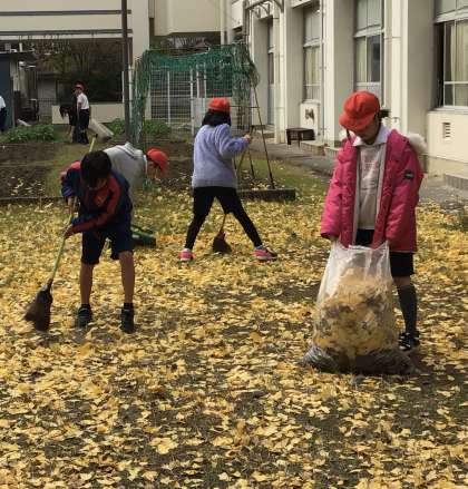 今日の掃除の様子です。外の掃除の子たちが、いろいろなところで落ち葉と格闘していました。根川小学校は、木が多いので、この時期の落ち葉もすごいです。掃除をしている最中にもどんどん落ちてくる葉っぱに、「キリがないよ。」と言いながらも、一生懸命に掃き集めていました。冬がやって来ます。