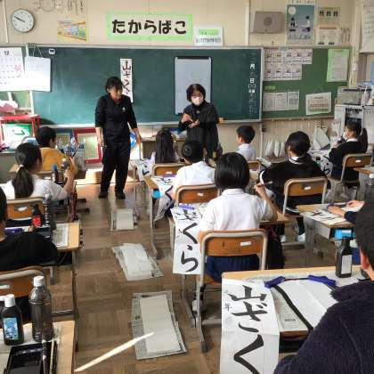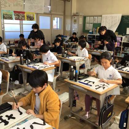 講師の方が来てくださり、3年生が書き初めの練習を行いました。3年生は今年から毛筆なので、長い書き初め用紙の扱いに四苦八苦。しかし、講師の先生のお話を一生懸命に聞きながら、真剣に書いていました。1月の書き初め大会に向けて練習していきます。
