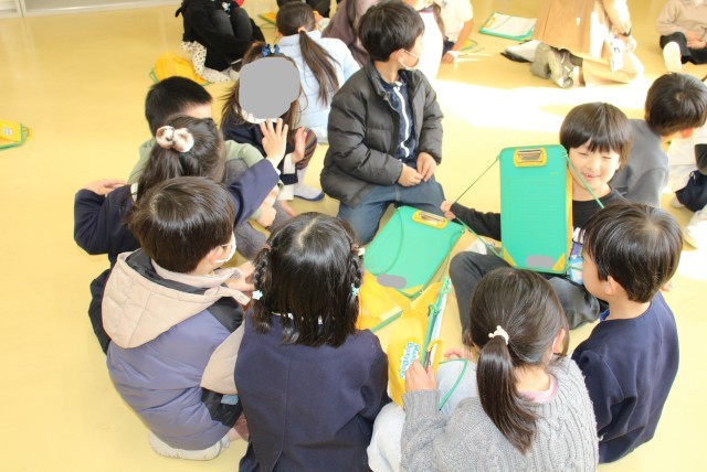 今日は入学説明会でした。来年度の新1年生の園の子が、1年生と交流をして遊びました。説明会では、受付や、歓迎の言葉などを5年生が担当しました。どの係の子ももう6年生の顔で、対応をしていました。1年生との交流では、普段助けてもらっている1年生の子たちが、お兄さんお姉さんの顔で、園の子たちにいろいろ教えていました。帰ってきた園の子たちは、仲良くなった1年生にバイバイをし、嬉しそうでした。