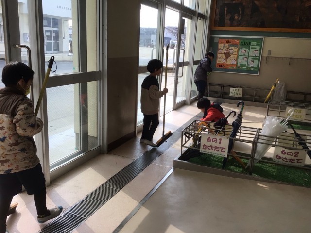 今日は4年生が学級閉鎖でお休みです。掃除の時に、3学級の子たちが、いつも4年生がやっている昇降口の掃除を代わりにやっていました。一生懸命にきれいにしてくれました。お休みや、校外学習などでいない学年がいると、こうやって他の学年の子たちが掃除をしてくれています。ありがとう。
