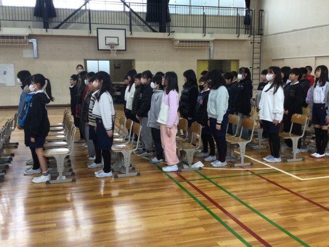 卒業式に向けて、6年生が一生懸命に練習を進めていますが、今日、卒業式に参加する5年生も第一回目の練習を行いました。卒業式の流れと、意識について話を聞きました。みじろぎもせず、真剣に話を聞いている5年生の姿から、6年生のために頑張ろうという気持ちが伝わってきました。