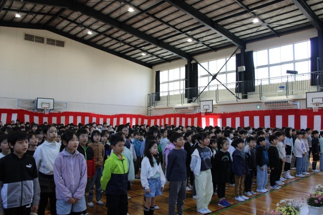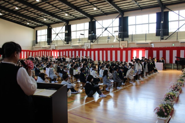 体育館で入学式と始業式を行いました。たくさんのご来賓や保護者の方が来てくださり、温かな雰囲気の中で式を行うことができました。