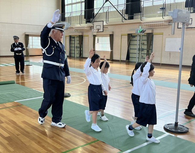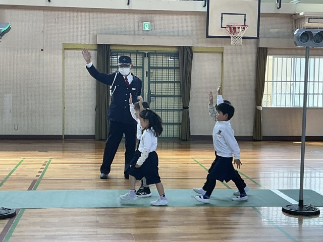 1年生が交通安全教室を行いました。交通指導員の方々が来てくださり、正しい歩き方や、信号の渡り方などを教えていただき、自分たちで実践しました。「右よし、左よし!」と大きな声で確認していました。