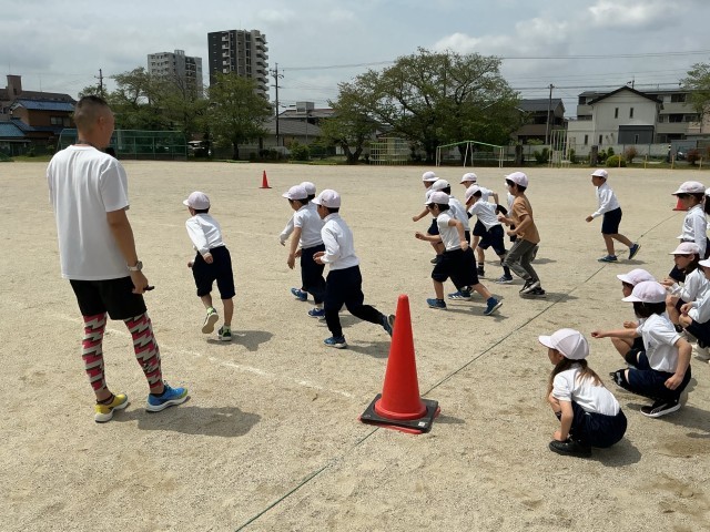 オリンピアンの方が来てくださり、走り方教室を行いました。姿勢、手の握り方、振り方など、いろいろなコツを、楽しいお話とともに教えていただき、子どもたちもとても楽しそうでした。終わった後には、「楽しかった!」「足が速くなったかも!」と自信にもなったようです。有意義な時間をいただき、ありがとうございました。