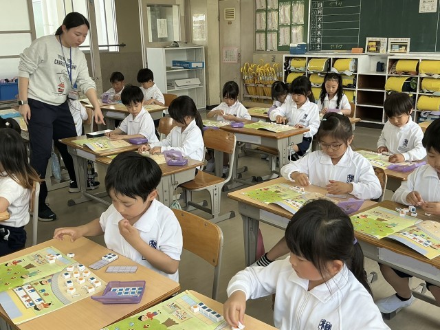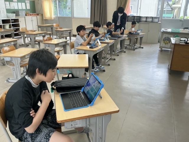 今日の授業の様子です。新しい教室にも少し慣れてきたようで、授業も本格的になって来ました。4年生は、絵カードを使って、図工の学習です。気づいたことはないか、似ているところはないかなど、友だちと話し合い、自分の好きなカードを見つけていました。1年生は算数の授業です。ブロックを使って数の大小を比べていました。新しくなった学習用タブレットも使っていきます。1学級が、タブレットで調べる練習をしていました。理解を深めるために、いろいろな物を使って行っていきます。