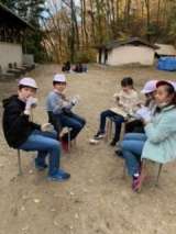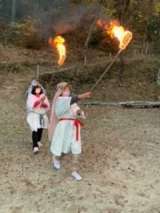 キャンプファイヤーの準備が始まりました。 ファイヤーの練習や準備をしている人もい...