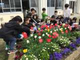 3月24日 1年生が来年の新入生のために植えたチューリップが、最近の暖かさのお...