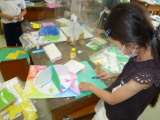 6月30日 1年生の図工の学習で、紙を折って立てた形からいろいろなものを作って...