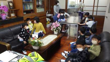 あいさつの練習をして校長室に入ってもらいました。