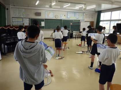 歌の練習では、明るい曲の調子を表現する際の工夫を話し合いました。ペアでの学び合いの様子や演奏と鑑賞のメリハリはさすが6年生と感じました。
