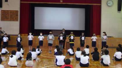 全校朝の会では児童会会長と副会長・委員会委員長・学級委員・わくわく班班長の認証を行いました。西広瀬小前期のリーダーが誕生する会ということで、校長の話は「リーダーとフォロワーのよい関係」と題して、それぞれ果たしてほしい役割と身につけてほしい力についてお話ししました。