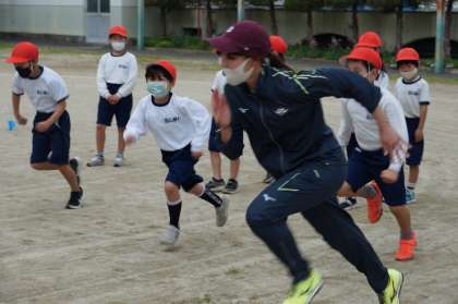 ロンドンオリンピック出場の豊田市出身アスリート「市川華菜」さんが3・4年生の短距離走の指導をしてくださいました。