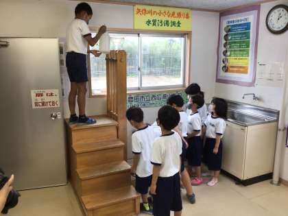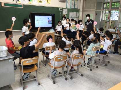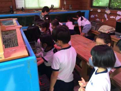4年生が2年生に、5年生が3年生に、6年生が1年生に、それぞれ説明をしました。3施設ペア学年活動では4,5,6年生がくすのき学習(総合的な学習の時間)で学んだことを伝えます。高学年にとっては学んだことをまとめ、伝える機会になります。低学年にとっては、西広瀬小学校が大切に受け継いできた特色ある環境教育活動を学ぶ機会になります。今後もペアを替えて月1回実施していきます。