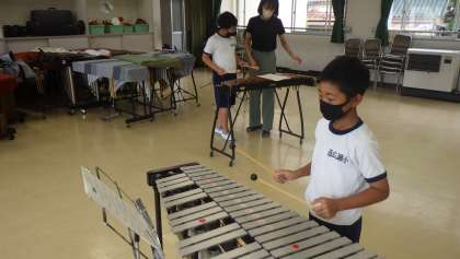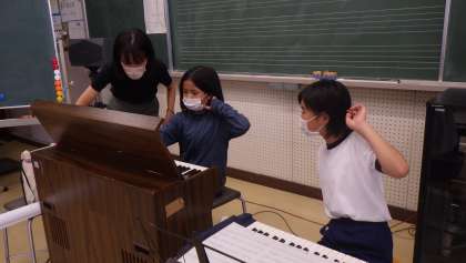 今日はピアノ、オルガン、木琴、鉄筋、の各楽器に分かれて練習を始めました。楽譜を見て、先生のアドバイスを聞きながら各自練習を進めていました。どの曲に挑戦しているのかは、音楽クラブの児童に尋ねてみてください。