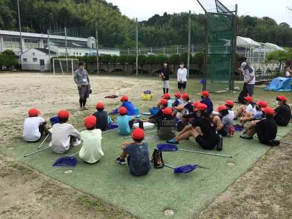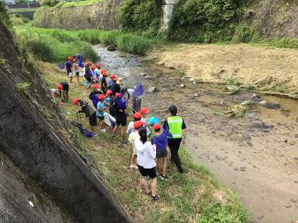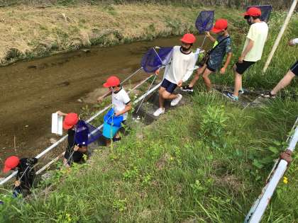 飯野川に棲む生物を調べて、飯野川の水質を調べる調査活動を4・6年生が行いました。市の環境政策課から派遣された2名の講師山口さん、丹羽さんと一緒に飯野川に向かいました。